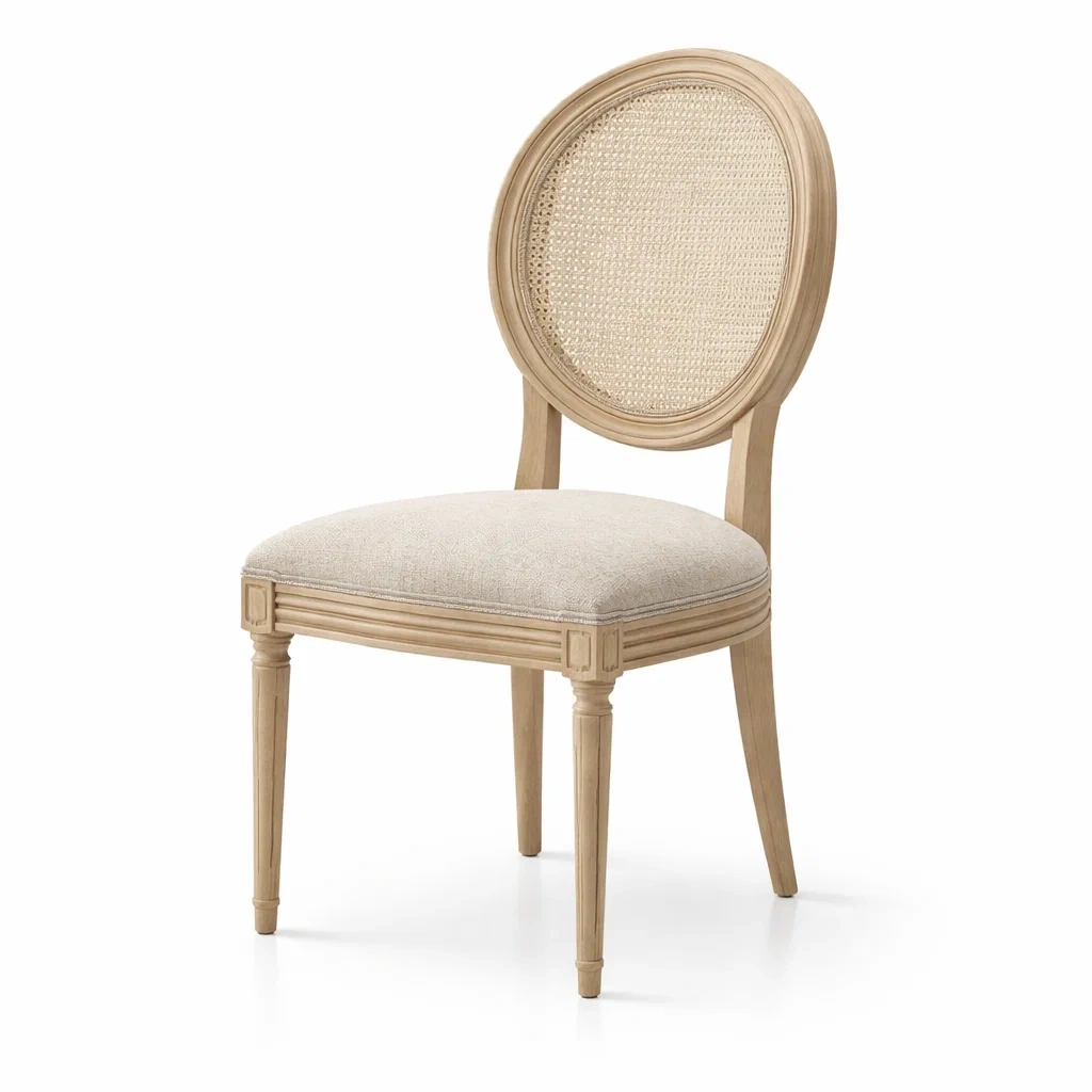 Chaise bois avec dossier en osier et siège beige