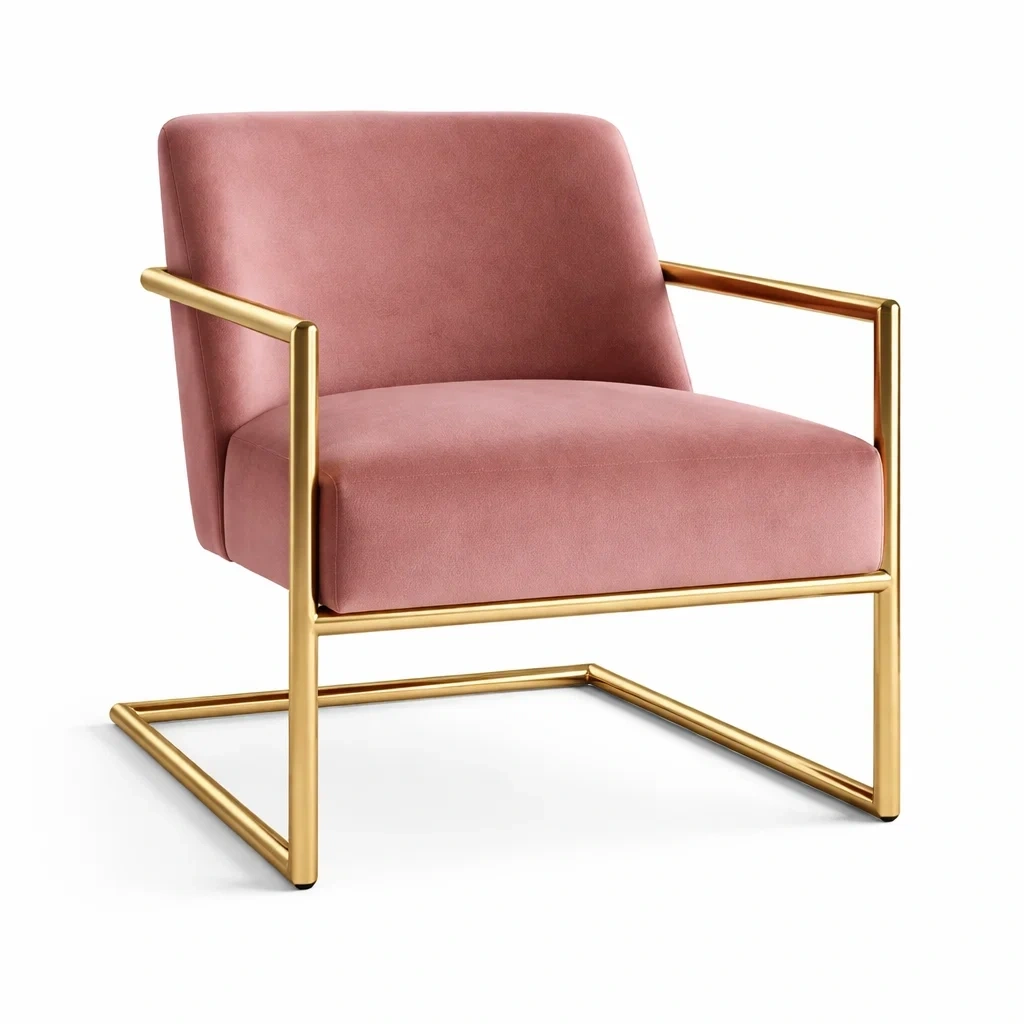 Ce fauteuil présente une surface en velours douce et un cadre en métal doré. Le coussin est rempli de mousse polyuréthane, offrant un confort optimal. Le design droit du dossier assure un bon soutien.